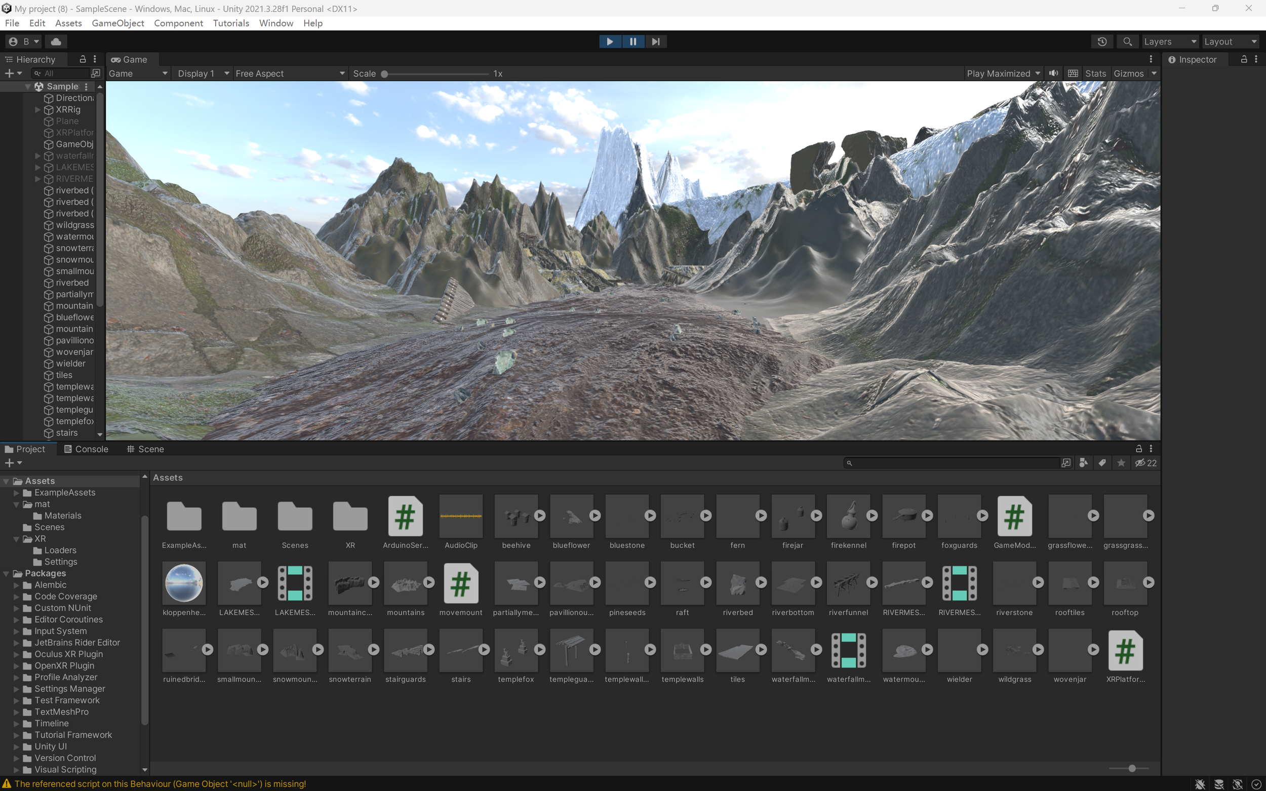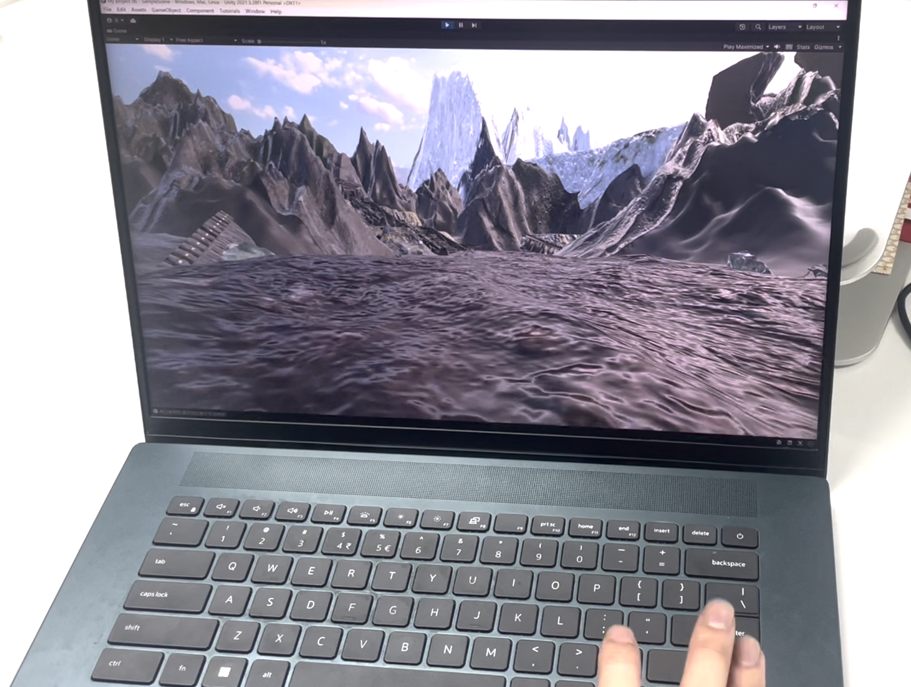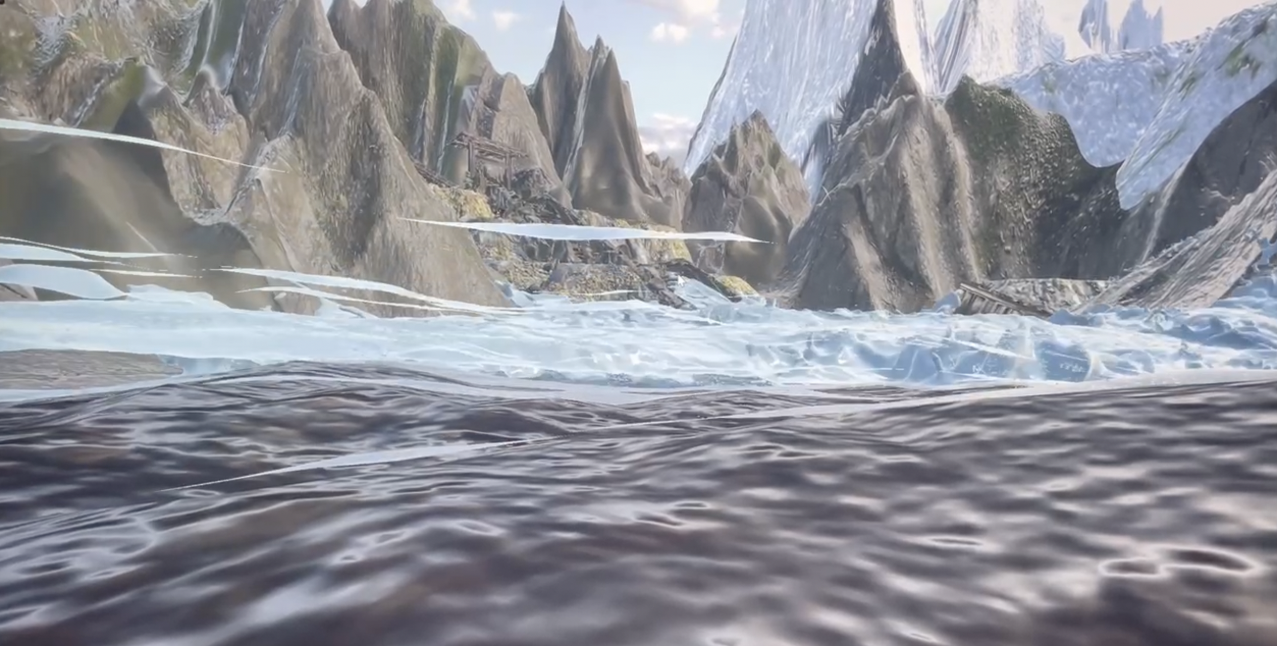We constructed a 3D model of an island with mountains and a lake using Cinema 4D and created dynamic water effects with the Houdini FX algorithm system. We then imported them separately into Unity 3D.