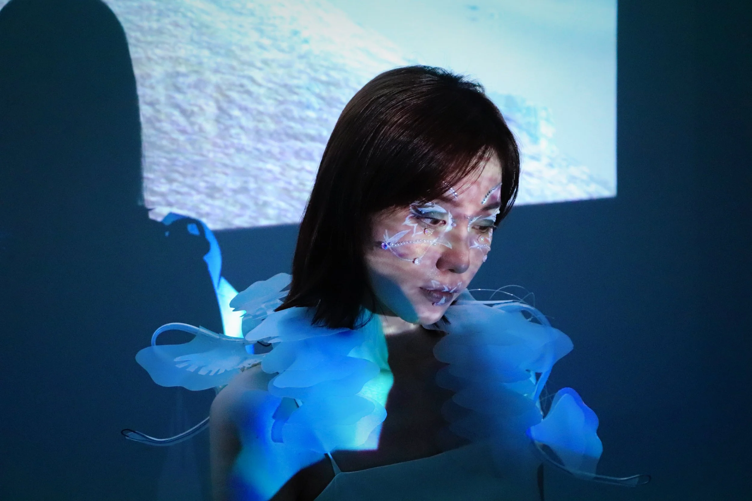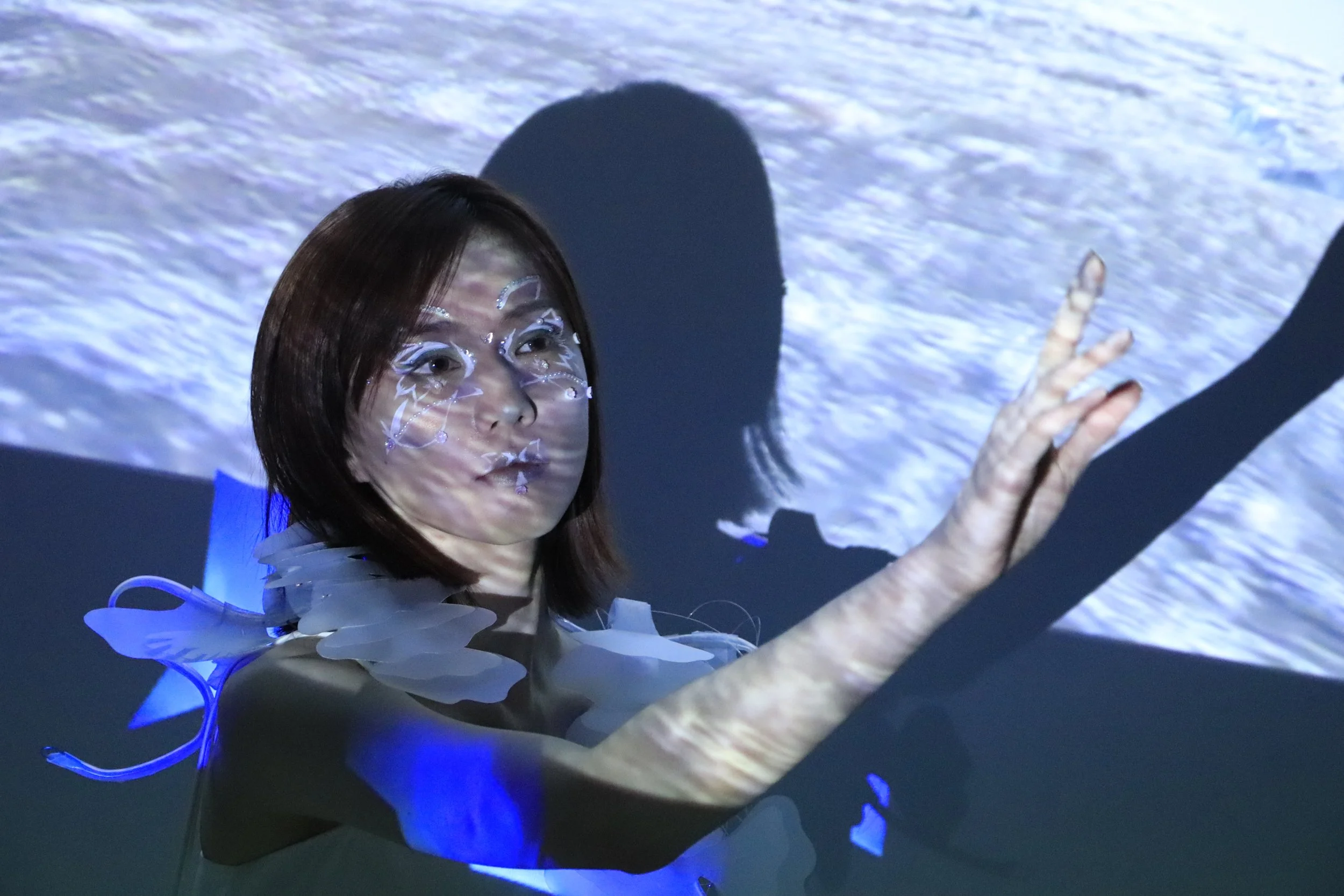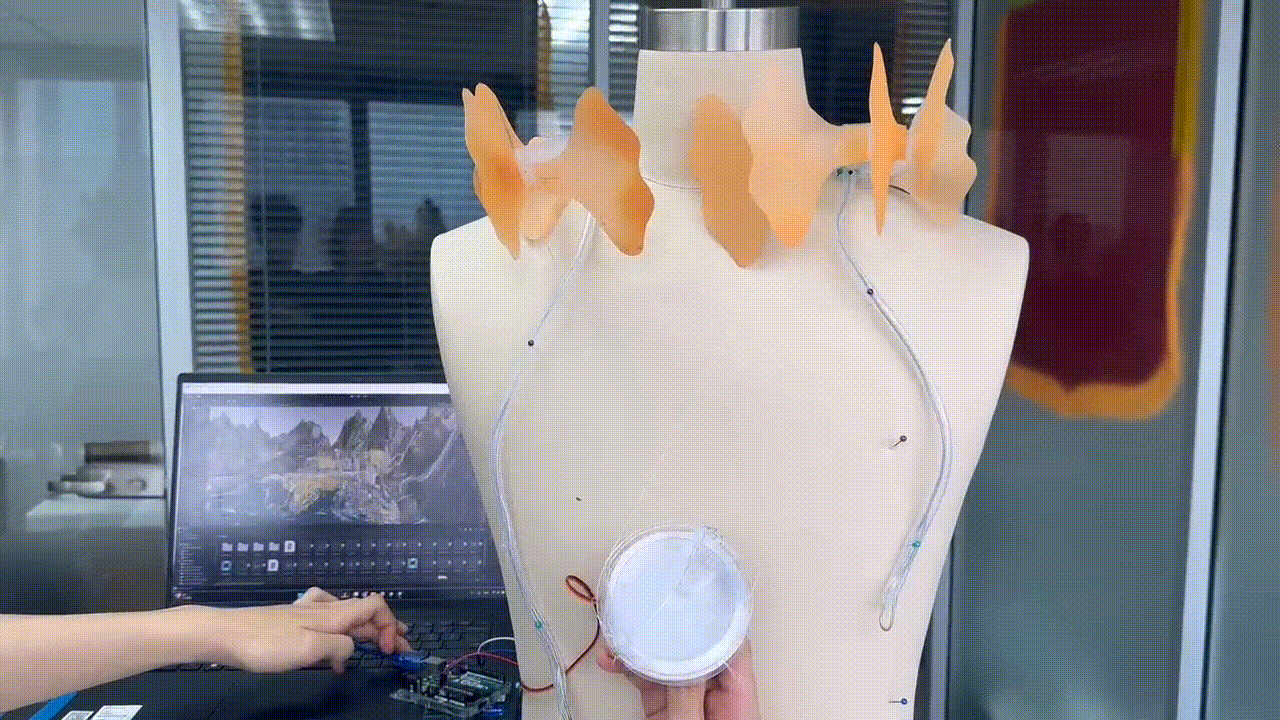 In ancient Chinese philosophy as depicted in "Zhuangzi," the concept of "Wandering" ( 游 ) represents a special idea, such as in "The Wanderer of the Boundless" ( 游无穷者 ) and "Wandering in the Unitary Qi" ( 游于一气 ) , expressing the free movement of the spirit and showcasing a transcendent state. This work uses an interactive narrative that blends reality and virtuality. Participants control an avatar in a virtual world, sometimes as a fish, sometimes as a butterfly, traversing an island with mountains and lakes. Simultaneously, a wearable device around the neck will "flatter" or "flap" in sync with the avatar's movements. The intention of this work is to blur the boundaries between reality and virtuality for the participants, achieving a state of "Wandering".